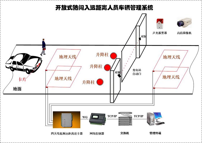 车辆携带授权合法感应卡,正常进出,当合法车辆到达升降柱前面,升降柱自动下降,车辆正常通行,非法卡或者无卡车辆,升降柱处于伸出状态,无法进入。
